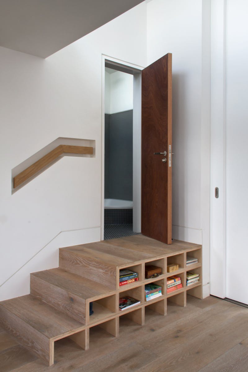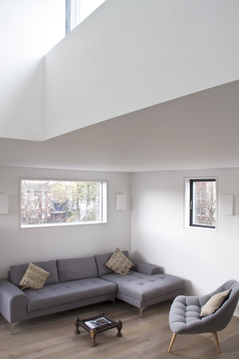 Unlocking the circulation was key. By adding an external stair, we were able to give more space to the first floor apartment and create a more efficient layout in the second floor flat, which has uninterrupted access. We opted for pre-weathered zinc for the external cladding, wrapping it up and around the front façade of the warehouse, knitting it back to the original masonry structure through the carefully considered placement of the windows. Photovoltaics and an air source heat pump are integrated into the design.