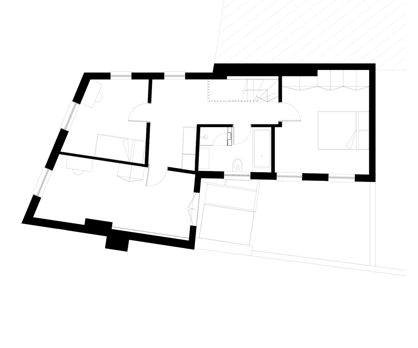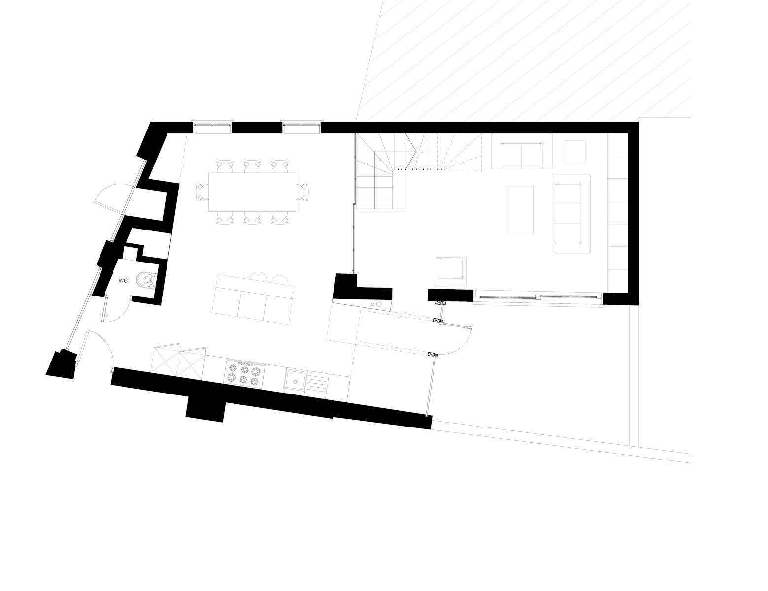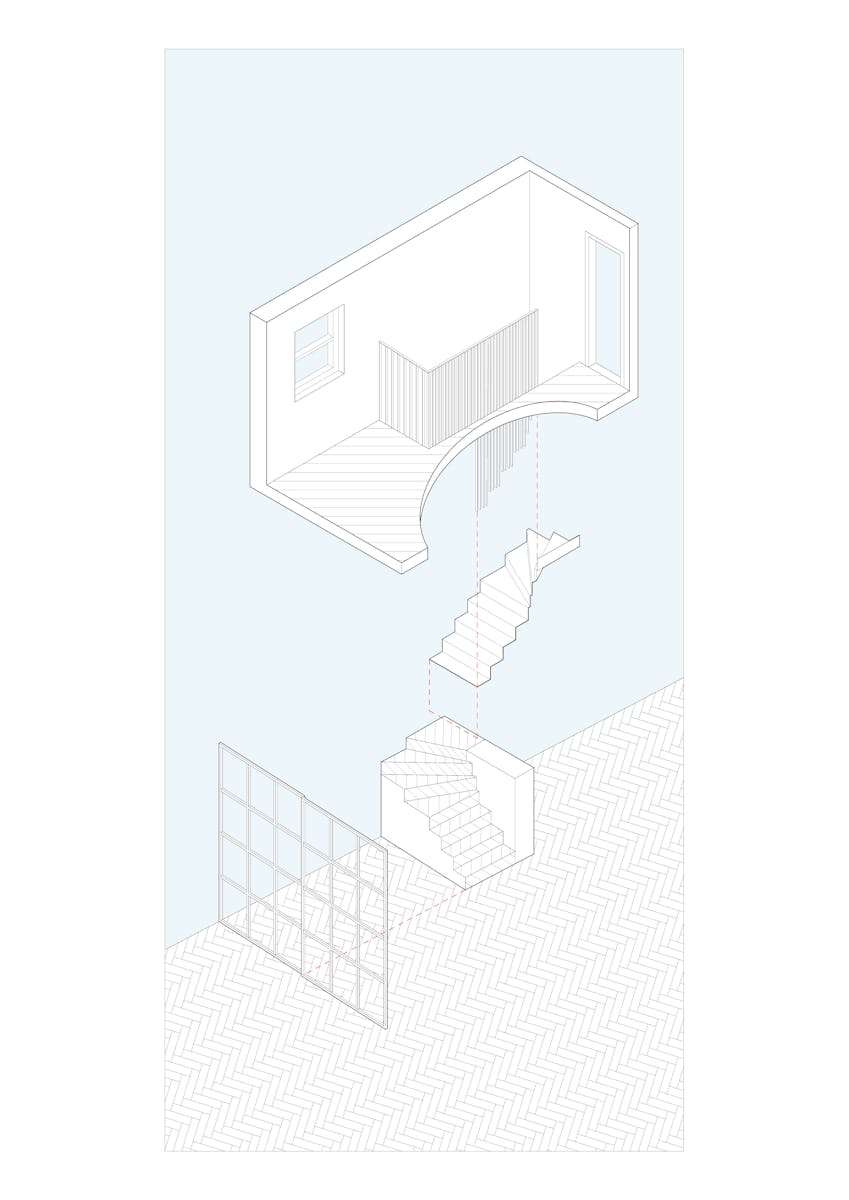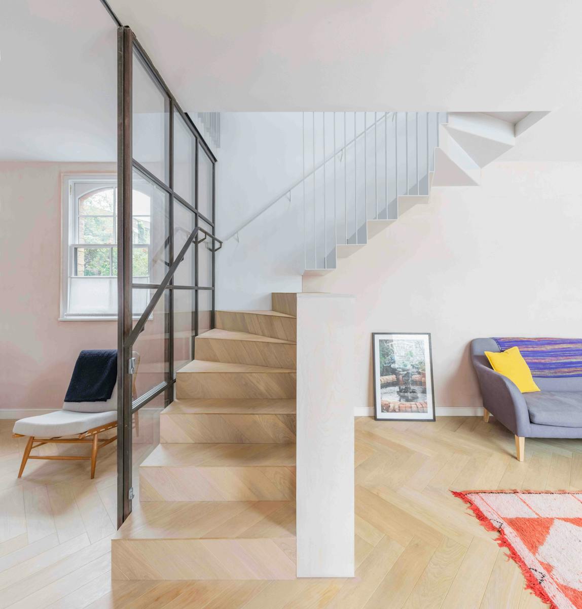 A late Victorian coach house, this building in Camberwell, south London, had remained untouched for thirty years, with a layout that still had echoes of its original arrangement: stable windows on the ground floor for horses and cart, and a first-floor fireplace in the coachman’s room. The historic patina was palpable, in the decorative brickwork, friezes and original timber hayloft doors.