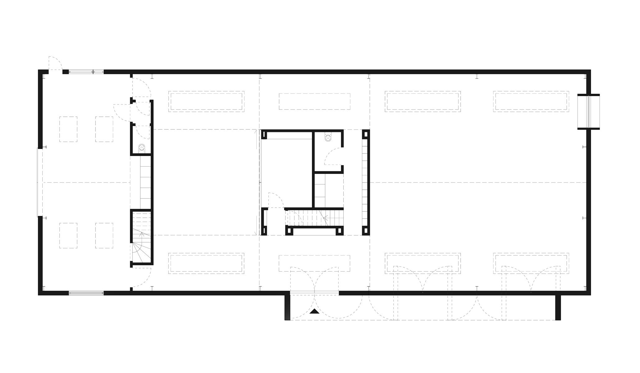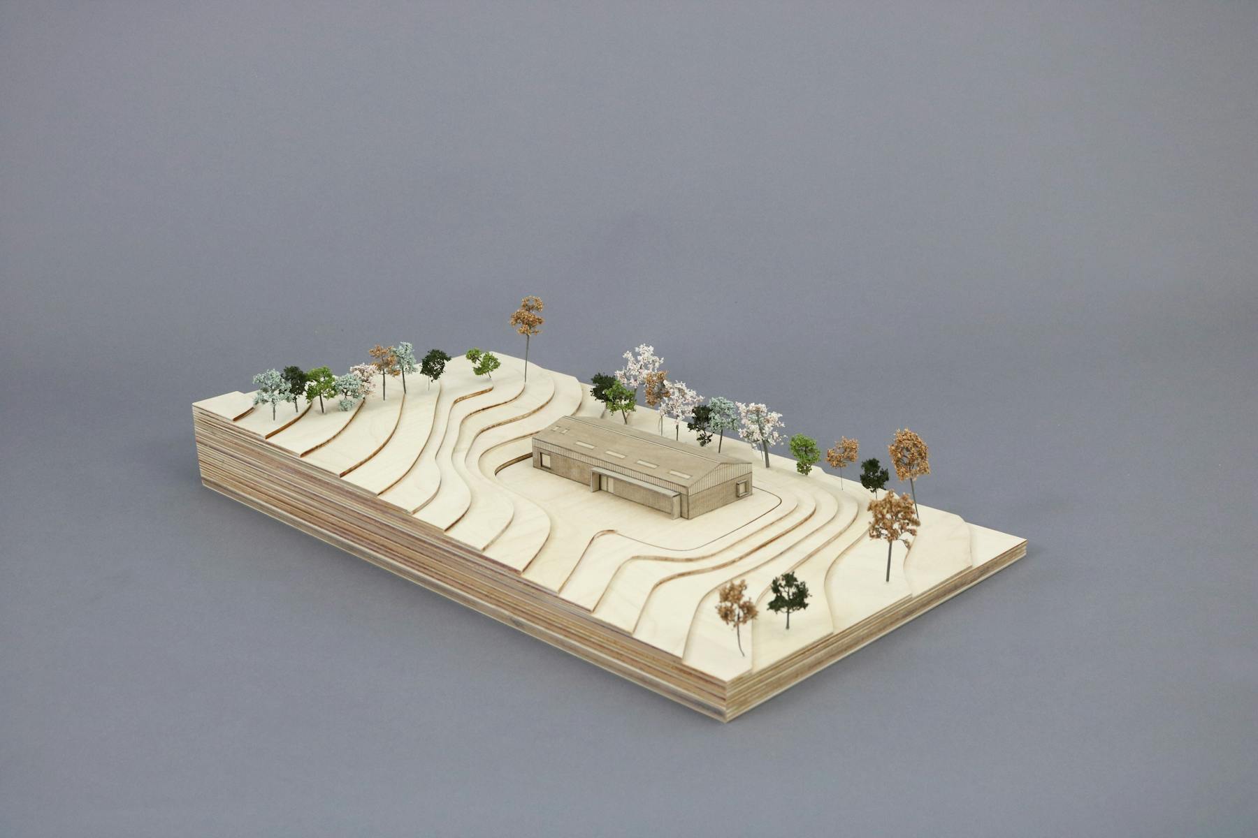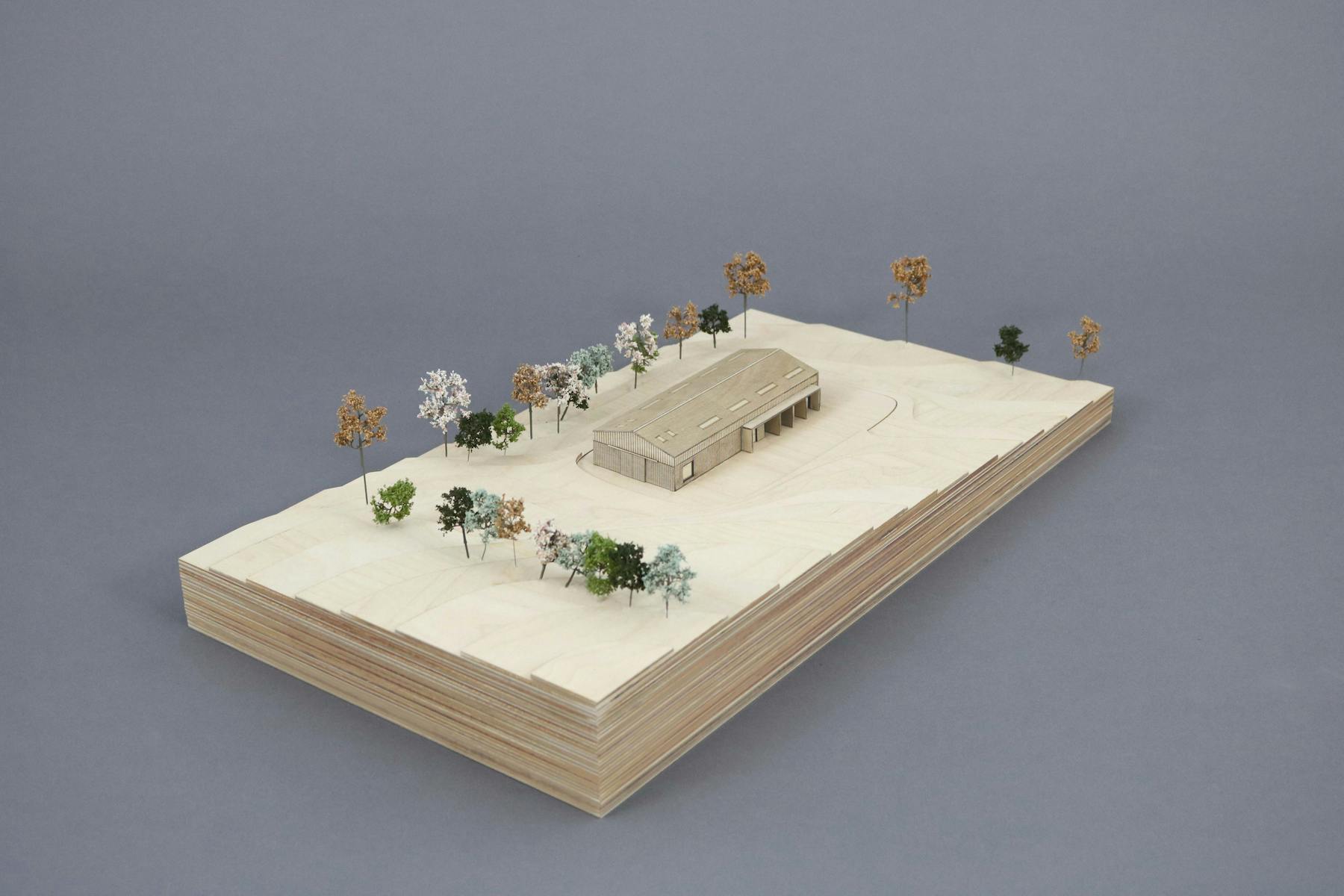 A gallery is by definition an inward-looking building, designed to display what sits within. This accords with the design of an agricultural shed, which doesn’t need to have a visual connection with its surroundings. Internally, the steel portal frames and roof form are exposed, and the internal partitions fully flexible to allow for three different scales of artistic display or production. One small gesture disrupts the introvert quality of the building. Seeing an opportunity to link the internal exhibition space to an external sculpture garden, we added industrially scaled pivoting doors which can be opened during the summer months to create a more free-flowing connection between inside and out. The entire volume is clad in reclaimed larch.